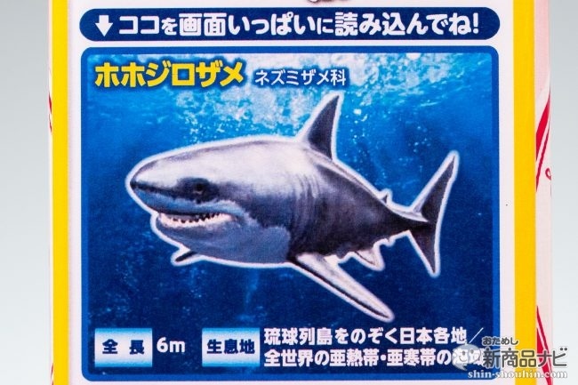 エサを食べるホオジロザメが見れる飛び出すARはパッケージごとに違い、各2種類ずつの全部で8種類。『さわやか果物 もも水』はくらげとホオジロザメ、『さわやか果物 巨峰水』はステゴサウルスとパラサウロロフス。『さわやか果物 なし水』のみ通常パッケージとなっている。