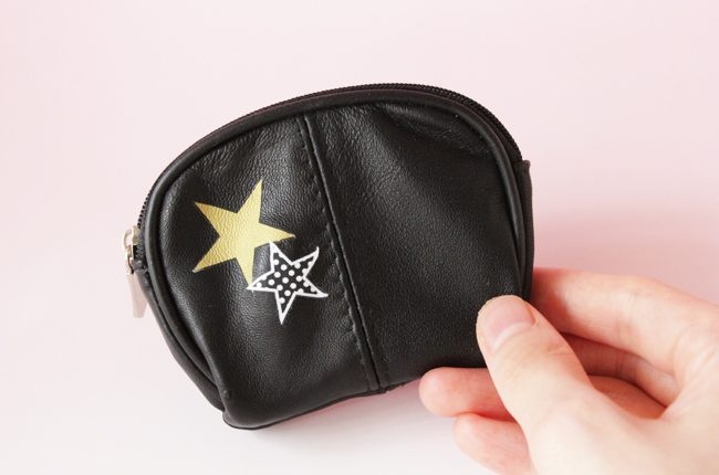 味気なかった無地のコインケースもこの通り。普段ならアイロンは使えない革製品に、こうしてワンポイントを簡単にプラスできるのはすごい。