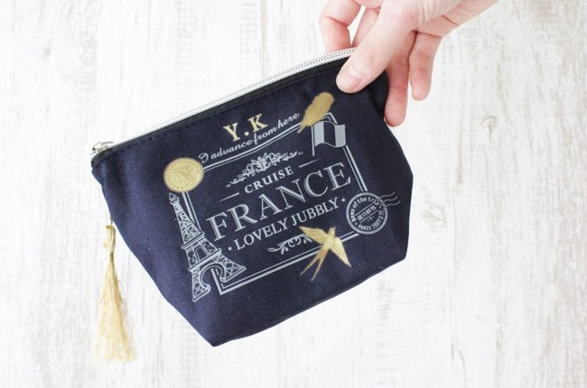 布製の柄のあるポーチを、もっと華やかにしてみたい時にも。