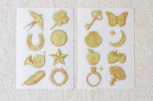 黒地なので、ホワイトやゴールドの柄を合わせるとくっきり!る位置を確認。この時にはまだ転写されないので、レイアウトを自分なりに楽しんで考えてみて。