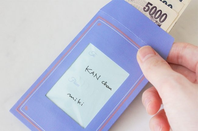 窓抜き部分にはPPが貼られていて、表に書いたカードの宛名などが見える様に。お金は見えないのがいいところ。
