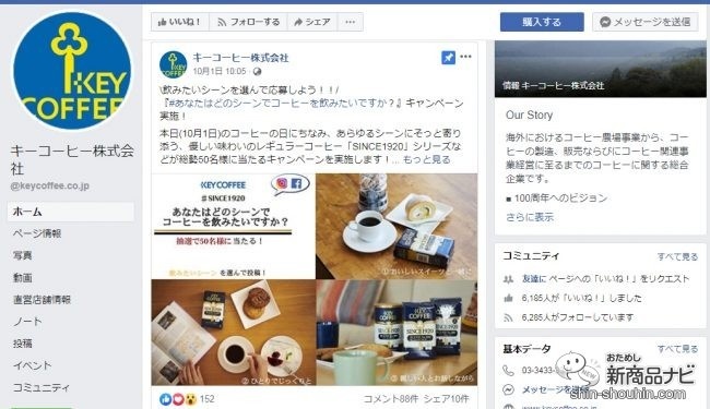 キーコーヒー公式Facebook。このキャンペーン記事にコメントを投稿しよう!キャンペーンの応募方法は2通り。ひとつはキーコーヒー公式Facebookの同キャンペーンコメント欄に「SINCE1920」シリーズを飲みたいシーン(①おいしいスイーツと一緒に ②ひとりでじっくりと ③親しい人とお話ししながら)を選んで投稿する。