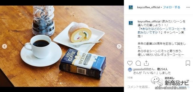 キーコーヒー公式Instagram。自分が「SINCE1920」シリーズを飲みたいシーンをスクリーンショット!もうひとつはキーコーヒー公式Instagram公式アカウントをフォローし、前述の「SINCE1920」シリーズを飲みたいシーンを選んでスクリーンショットを撮り、ハッシュタグ「#keycoffee」と「#SINCE1920」を付けてInstagramに投稿すれば応募完了となる。