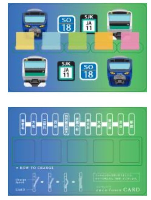 相鉄線と埼京線の車両前面 と、駅名標アイコンが描かれたカード型ふせん。