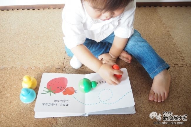『あかちゃんブロック+えほん』は物語を交えながら楽しくそんな動作にチャレンジすることで、自然と両手の発達を促してくれる。ブロックをコロコロ転がしてみたりカチカチ打ち合わせて音を出してみたり、遊び方のバリエーションがたくさん楽しめるのも大きな特徴だ。