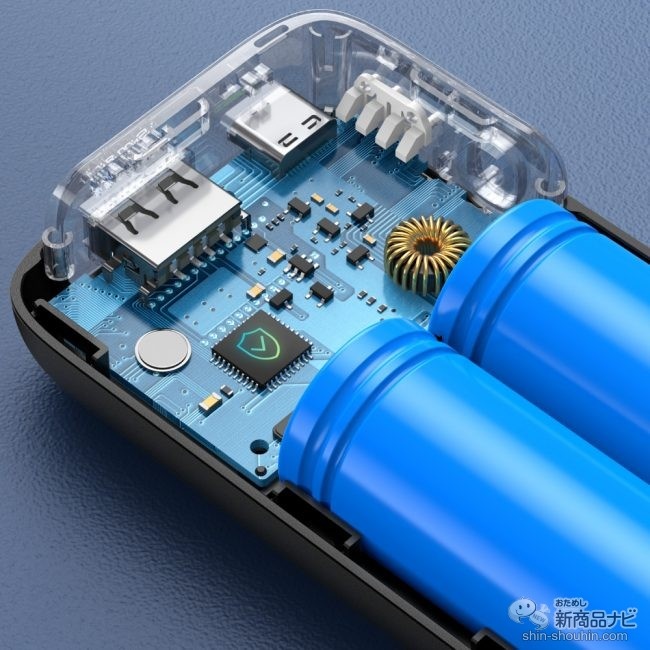出力端子はiSmart対応USB Type-AとPD(Power Delivery 3.0″規格)対応Type-Cの2つ。もちろん2台同時充電可能だ。なお、充電時はUSB Type-Cのポートを使用する。
