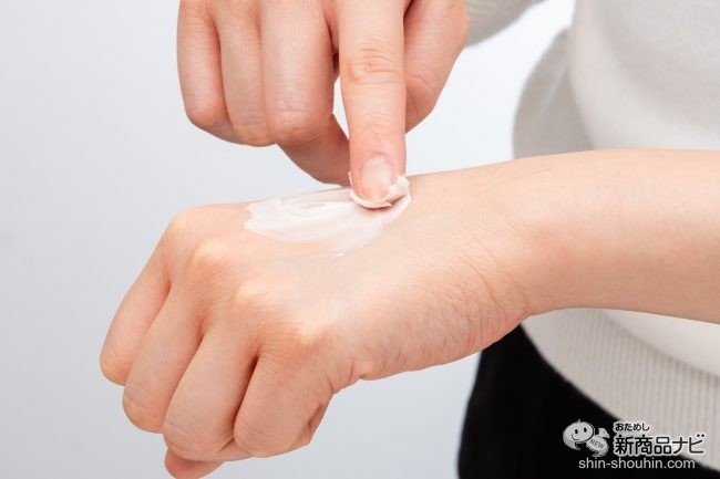 手の甲にのせてみると、のびは悪くない。すっと浸透するというよりは、しっかりと密着し、パックするような感触だ。まさに密封ラップ!