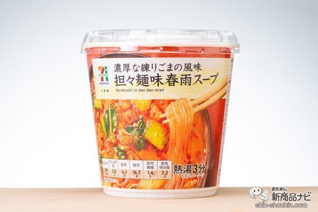 練りごまが良い味出してる最後は中華系スープ春雨。セブン&アイのPB、セブンプレミアムから発売の『担々麺味春雨スープ』(33g・希望小売価格 税込138円・2019年9月24日発売)は、先の2品があっさり系だったのに対して、ピリッとしたスパイスの花椒(ホアジャオ)を使用したちょっぴり刺激的なセブン-イレブン店舗限定の商品。