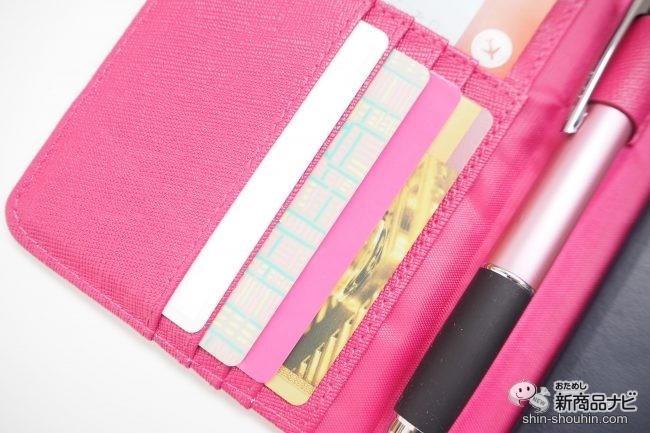 マイレージカードやクレジットカードを収納できるカード入れもたっぷり4枚分。
