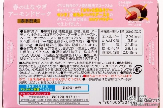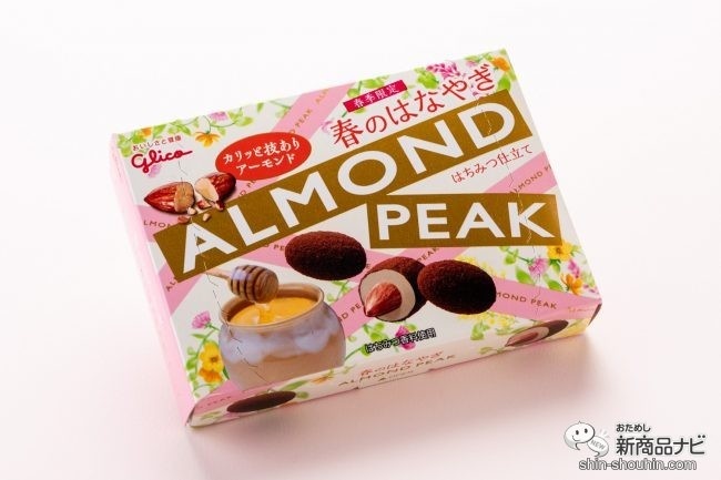 こちらも春季限定の、はちみつを加えたクリームが入っていてしっかりとした甘みが楽しめる江崎グリコ『春のはなやぎアーモンドピーク<はちみつ仕立て>』(55g・実勢価格 税込238円・2020年2月11日発売)。同社の看板ブランド「アーモンドピーク」といえば、独自製法でキャラメリゼ(アメ焼き)した「カリッと技ありアーモンド」が特徴のひとつ。