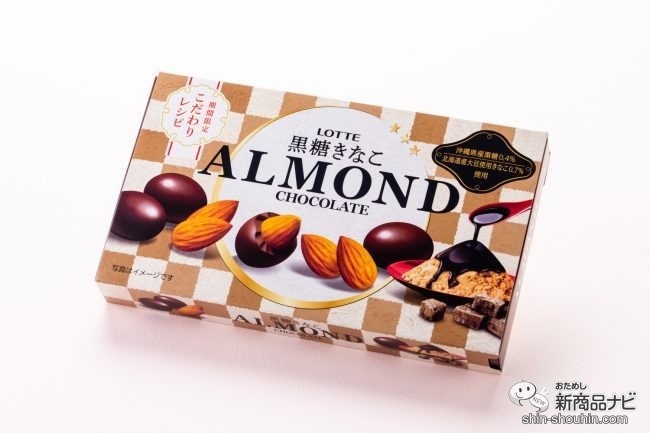 まずは、お口の恋人・ロッテのロングセラーブランド「アーモンドチョコレート」より、素材にこだわってつくられた期間限定の『アーモンドチョコレート<黒糖きなこ>』(74g・想定小売価格 税抜約250円・2020年2月11日発売)。