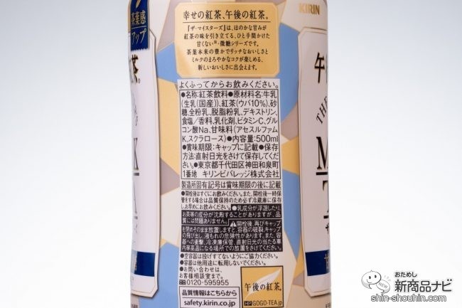原材料表示の違いは、「牛乳」が「牛乳(国産生乳)」に。「紅茶」がミルクティーと相性抜群の「紅茶(ウバ10%)」に変わっていた。ポットで茶葉から丁寧に入れた紅茶の味わい、に近づいたような気がする。ペットボトルでこの茶葉感は贅沢な気分が味わえて、テーマ通り私を幸せにしてくれた!