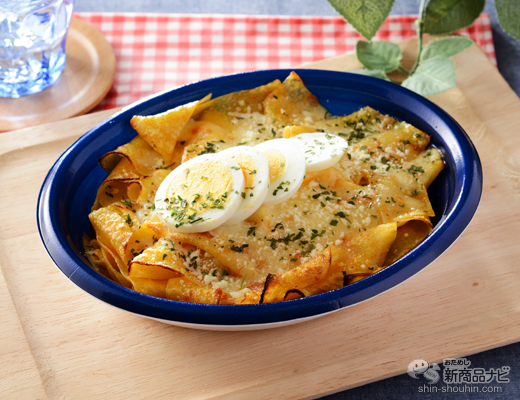 4種のチーズとトマトのうまみたっぷりのミートソースを合わせたナポリ名物のラザニア風焼パスタ。ゆでたまごやパセリ、パルメザンチーズを彩りよくトッピング。