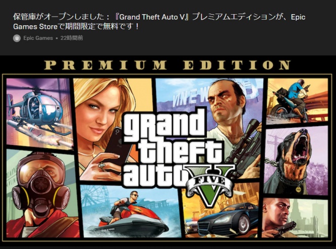 Epic Storeで『グランド・セフト・オート5』が無料配布中 22日迄
