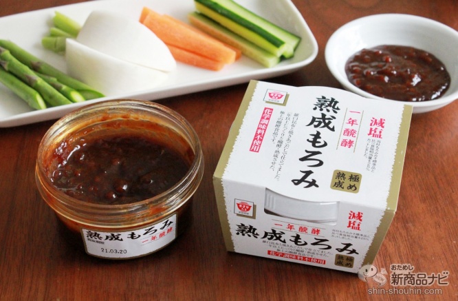 食塩25%カットの減塩『1年醗酵熟成もろみみそ 160g』(160g・販売価格 税込348円・発売中)は、長い期間と手間を掛け、1年以上じっくりと発酵・熟成させることで、酵母や乳酸菌の働きが強くなり、もろみみそ本来の風味や濃厚なコクを引き出している。