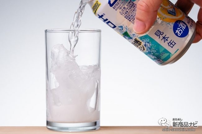 ちなみに、チューハイをはじめ氷を入れたグラスに炭酸系を注ぐ際は、氷に直接当てて炭酸が飛ばないように注意すると、より美味しくいただける。