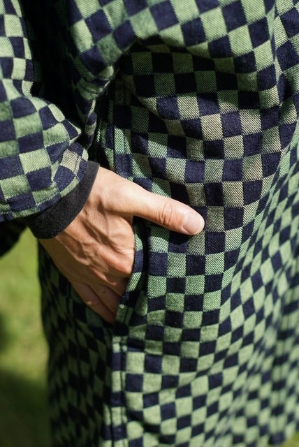 羽織は和装に合わせて羽織るという考えが一般的ですが、この「市松デニム羽織」は洋服に合わせ楽しむことも考えられている羽織。両サイドには長財布も入るポケットがついています。