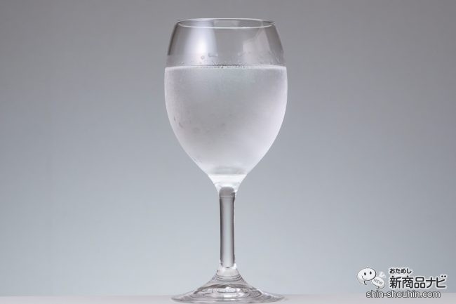 ワイングラスに透明な液体が入っているのはなんとも不思議な印象。