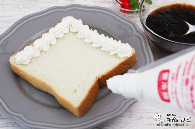 生クリームを食パンに縁取るように絞っていく。