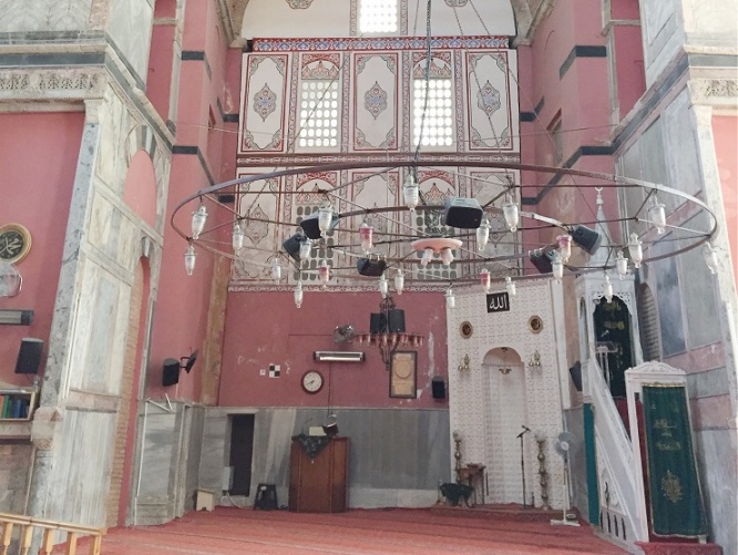 さらに時は流れて1746年、当時トプカプ宮殿のハレムに仕えていた宦官長が、カレンデルハネをモスクに改修するためミフラーブ(モスクにおいてメッカの方向を示すもの)やミンバル(説教壇)などを設置しました。6世紀に教会として造られた建物は、この時にモスクに変わったのです。