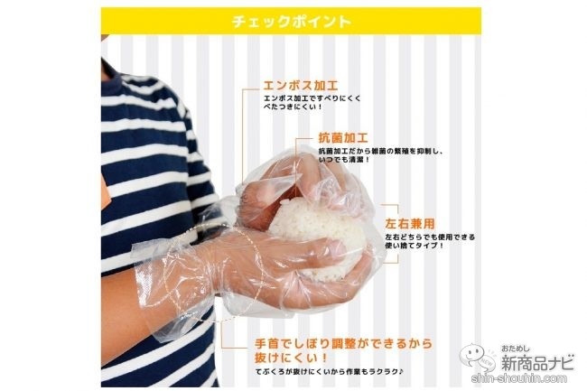 手首のストッパーのおかげで、手袋にくっついて握りづらいおにぎりもスムーズに握ることができる優れもの。