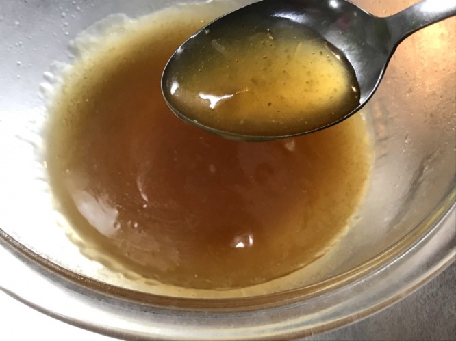 ある程度まぜたら、600Wの電子レンジで60秒ほどチンするだけ!するとどうでしょう!トロトロとした半透明のよく見る「みたらし餡」になりました!