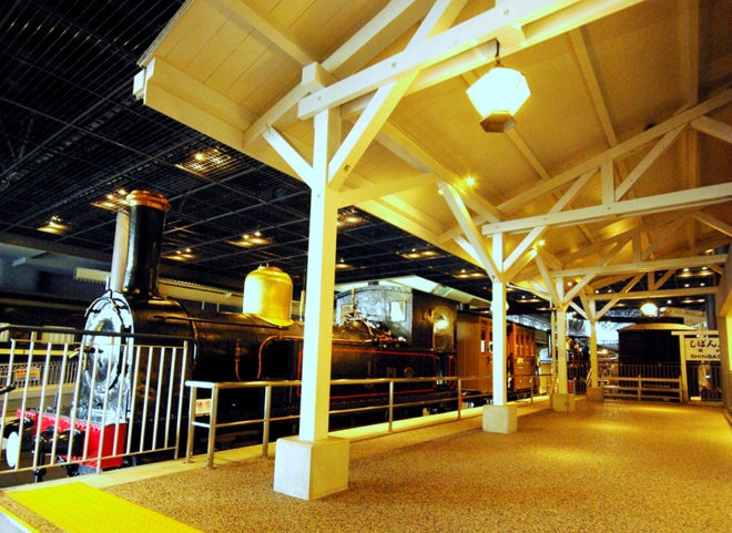 機関車のすぐ傍に復元された、新橋停車場のプラットホームにも注目!黎明期の新橋停車場にタイムスリップしたように、当時の雰囲気を色濃く伝えてくれます。