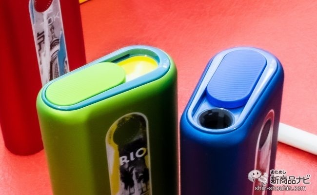 左が「アイコス」、右が「グロー・ハイパー」。スティックサイズが全然違う一方、ブリティッシュ・アメリカン・タバコ・ジャパン(BAT)『グロー・ハイパー』(82×45×22mm/約106g・希望小売価格 税込3,980円・発売中)は、スティックを外側から温める周辺加熱式。加熱温度は250/260℃の切り替え式で、紙で巻かれたスティックを周辺から加熱する分、多少喫味は弱くなるがデバイス内部が汚れにくい。