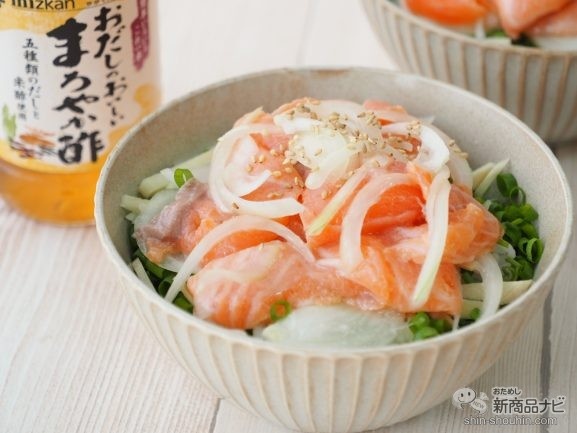 ちなみに「サーモンと玉ねぎのぶっかけすし丼」は、ごはんなしでもサラダ感覚でいける。唐揚げなどにかけるのもおすすめ!