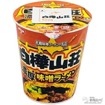 札幌の名店「白樺山荘」監修の「濃厚味噌ラーメン」!濃厚味噌のコクと豚の旨みが効いた旨味噌スープで、豚骨とにんにくの風味を加える別添「特製油」付き。具材は、肉ミンチ、メンマ、黒キクラゲ、ネギ入り。