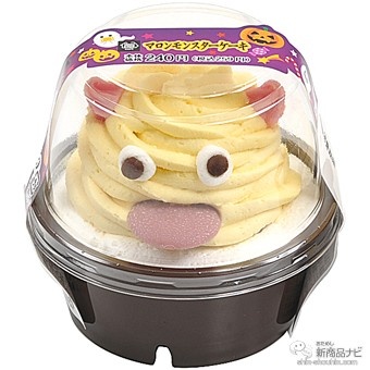 ハロウィンにぴったりのモンスターをイメージしたスイーツ。シロップを浸み込ませたスポンジとホイップクリームに、マロンホイップを絞り、チョコ等でモンスターの顔を表現!