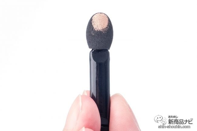 アイシャドウをチップにとると、しっかりとチップが色づく。