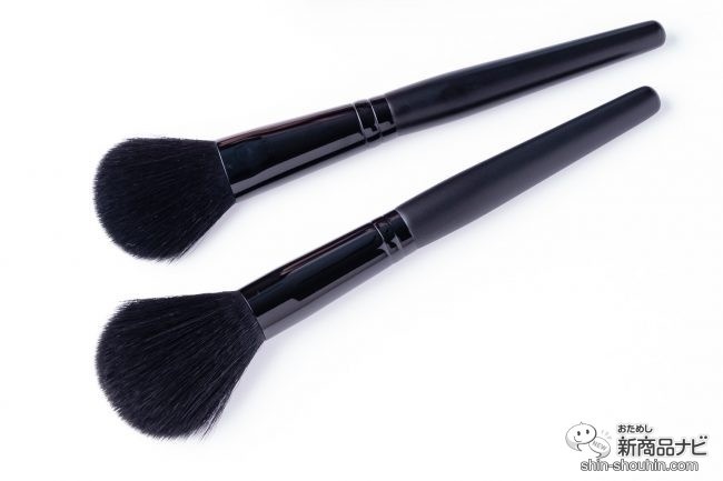 チークブラシと並べるとこんな感じ。上:チークブラシ、下:フェイスブラシ『matsukiyo フェイスブラシ』は、パウダーファンデーションやルースパウダーを肌にのせるのにぴったり。