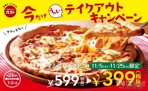 『ガスト・新メニュー』超お得なキャンペーン再び! テイクアウト限定の399円「マルゲリータピザ」! 店内メニューは「いちごスイーツ」づくし! (1/3ページ)