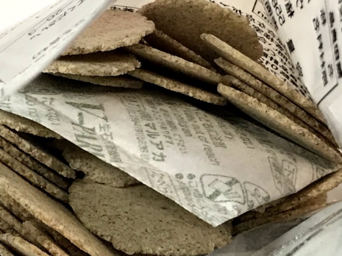 なんとか2枚目も飲み込み、比較のためにえびせんべいを食べてみます。パリパリパリ・・・うん、正直コオロギせんべいと変わらん!あおさが練り込まれているので当然あおさの香りはするのですが、それ以外に違いを感じることは出来ませんでした。