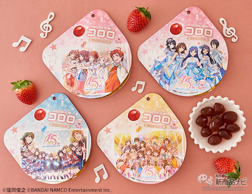 コロロとアイドルマスター15周年を記念したオリジナルデザインのタイアップ商品。15周年にちなんだ「イチゴ味」で展開。パッケージデザインは全4種。