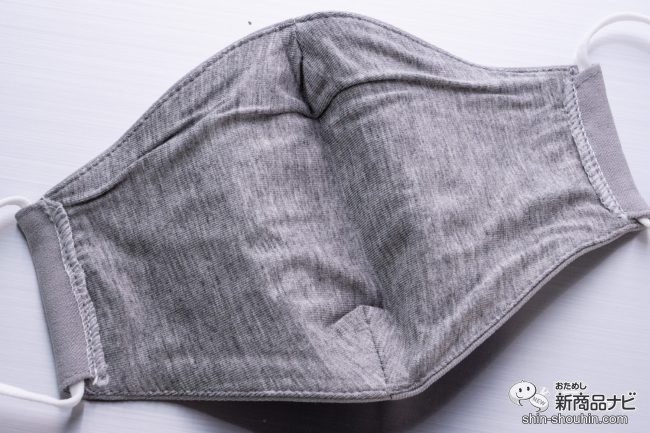 耳ひも部分は長さ調節可能なホワイトのゴムひもだ。