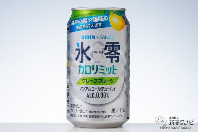 『ノンアルコールチューハイ 氷零 カロリミット グレープフルーツ』は、フルーティーなグレープフルーツ感と爽快なキレで、食事に合う味わいが特徴だそう。