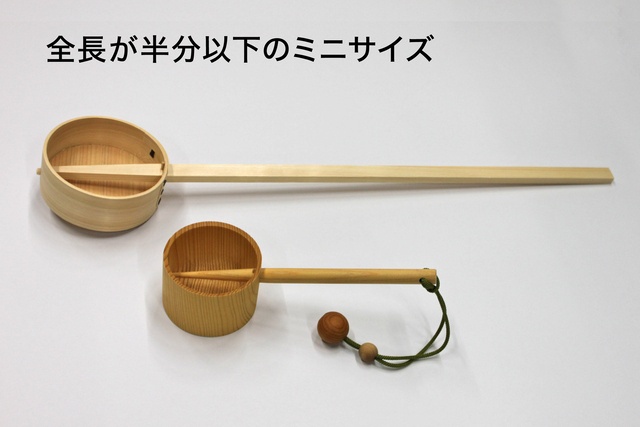 柄杓にも種類がありますが、一般的な神社用の柄杓は直径が約10cm前後で全長が約50cmと長く持ち運びには不向きです。「マイ柄杓 HISHAKUん」は、直径が約7.6cmで全長約21cmとコンパクトサイズ。持ち運びやすい、安心・高品質のミニ柄杓です。