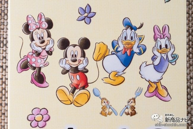ミッキー、ミニー、ドナルド、デイジーが、「ほっぺが落ちそう」とばかりに頬をおさえるキュートなデザインに、早くも心を奪われる。