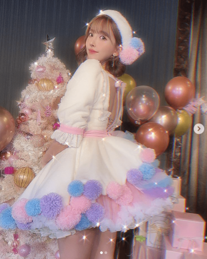 さらに「皆さんにとっても素敵な思い出になってたら嬉しいです! もちろん私はとても楽しかった 今年最後のソロイベだったけど、また来年もみんなと笑顔で会えますように 少し早めのメリークリスマス」とファンにメッセージを送り、「昨日の衣装が本当に可愛く仕上がって いつもスタイリストさんにイメージだけ伝えてこんな感じでって言ったら想像以上に可愛いものを作ってくれるんです」とクリスマスイベントの衣装を着こなす写真を投稿。背中が大きく開いた白のドレスに、ピンクやパープルといったパステルカラーの装飾が施されており、ガーリーでメルヘンチックな雰囲気が漂っている。