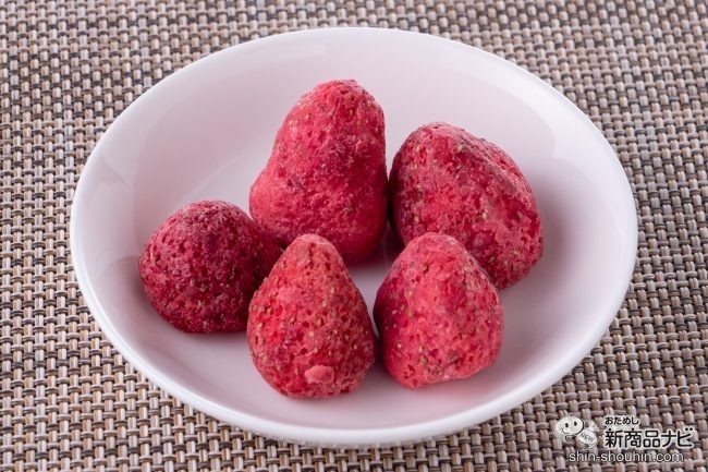 1袋(40g)当たり258kcal・GABA成分(40g)当たり30㎎。ミルキー感たっぷりの『まるごと苺』(内容量 40g)は、苺&ホワイトチョコレートコンビのしっとりチョコ。ホワイトチョコのまろやかさと、フリーズドライ苺の甘酸っぱさが重なる味わいが特長だ。