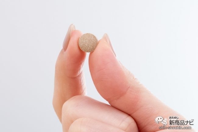 水と一緒に飲んでみると、舌触りはツルツルとしていて喉に引っかかることなくスルっと飲めた。独特な味だが舌には残りにくく不快な印象はない。1粒の大きさは直径9mm×厚み4.3mmと小さく、慣れればひと口で6粒を飲めるからストレスなく摂取出来る。