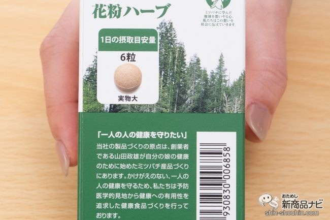 その1つの方法として紹介したいのが、株式会社山田養蜂場(岡山県苫田郡)の『花粉ハーブ』(180粒入り・希望小売価格 瓶:税抜 8,286円/袋:税抜 8,186円・発売中)。高品質ブラジル産プロポリス、花粉荷や10種類の植物由来成分を配合したサプリメントだ。