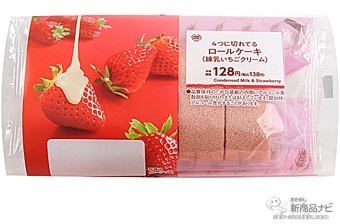 ■4つに切れてるロールケーキ(練乳いちごクリーム) 128円(税込138円)