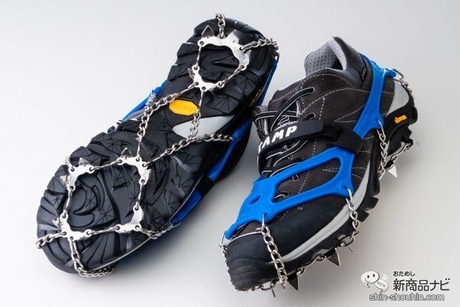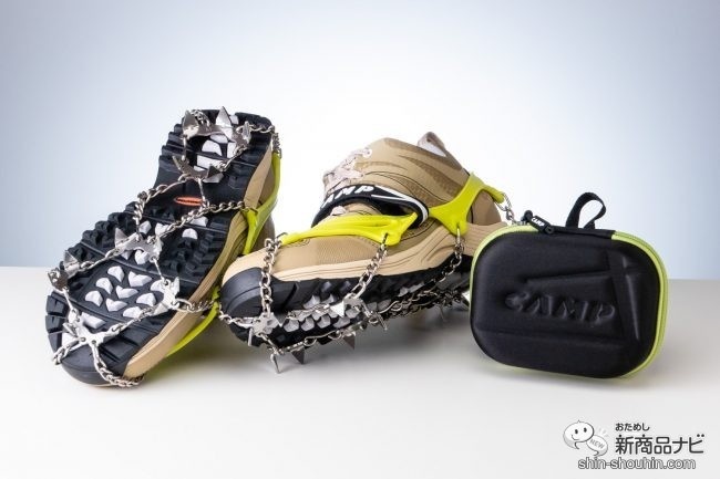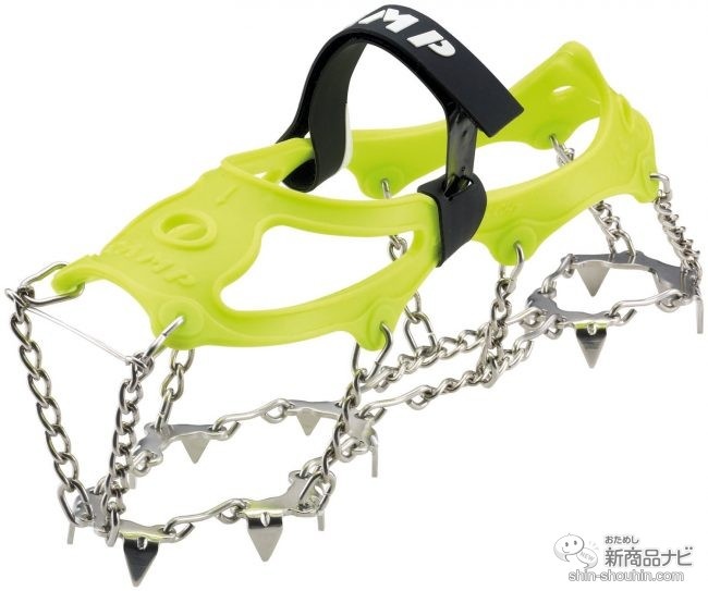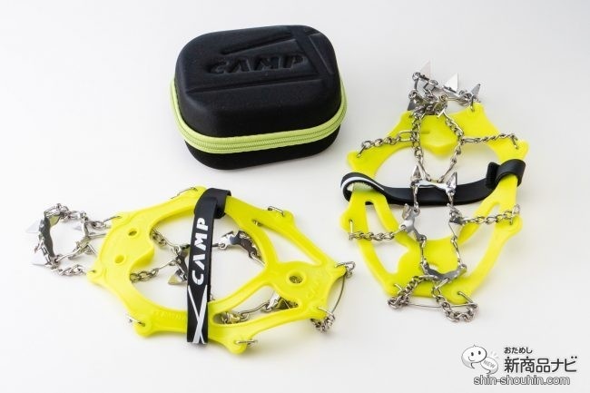 「登山靴のキャラバン」として様々な登山用品を手がけている株式会社キャラバン。今回紹介する『CAMP アイスマスター ライト』(S/M/L/LLサイズ・価格 税抜5,800円・発売中)は同社取扱いブランド「カンプ」の商品で、登山などで使用される靴底に歯をつける※本格アイゼン(クランポン)の手軽に使える軽アイゼンに分類されるタイプだ。