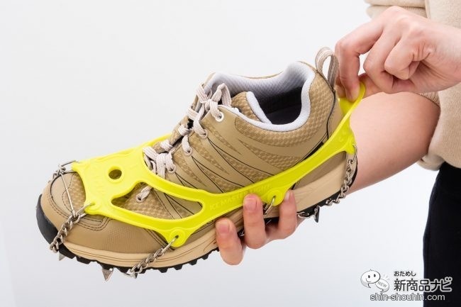 もちろん、使用するときは積雪や路面凍結している場合に使用するのが前提なので、歩行時は爪の部分が氷に刺さりチェーン部分が雪に食い込んでスリップを防いでくれるというわけだ。