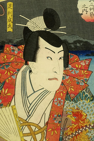 約28年間にわたって室町幕府と渡り合い、関東一円で激戦を繰り広げた足利成氏。歌川国貞「八犬傳 犬之艸帋之内 足利成氏」より。