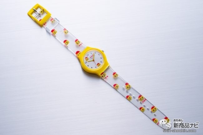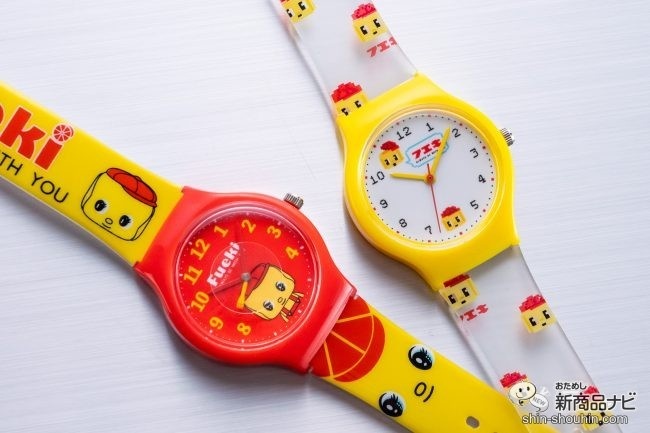 文字盤にはなかなか見れないフエキくんの上半身をプリント。時計本体はフエキくんの帽子をイメージした赤色なのだが、ベルトにはつばと顔がプリントされていて遊び心を感じる。