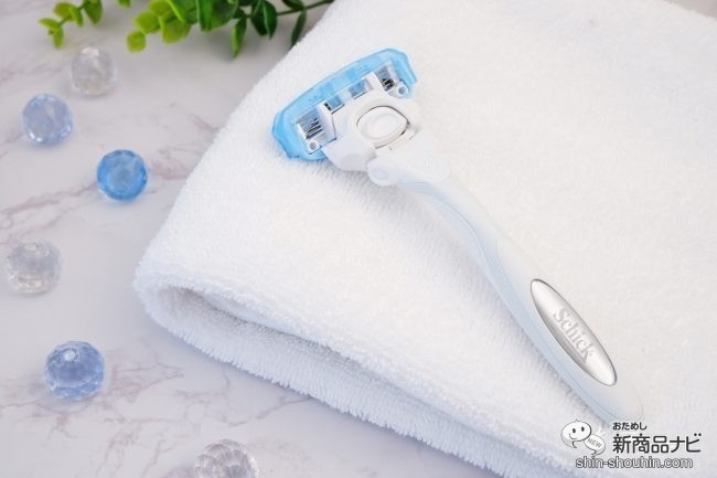 体のカーブにぴったりとフィットして、ひとそりでサロン肌を目指せる剃り心地。肌への密着感が感じられるものは、他のハイドロシルクシリーズにもあるが、「SALON+(サロンプラス)」はシック独自の「Wフィット設計」ハンドルがポイント。